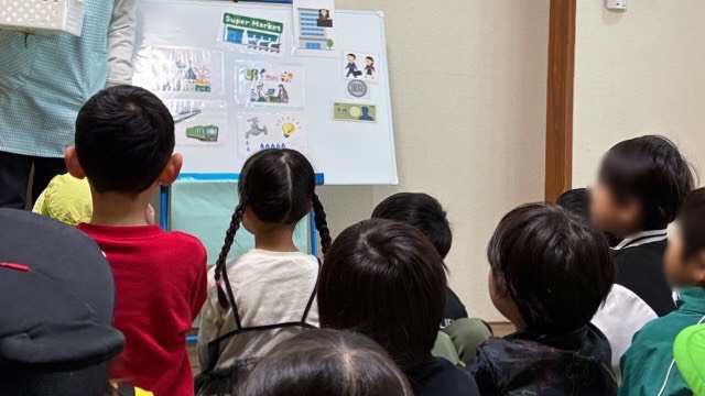 電子マネーでの買い物が多くなり、お金を支払っているところを見ることが少なくなってきました。そこで、自分でお金を持っていき、お店で支払いをし、お菓子を買う経験をしました。お店屋さんごっこを活かしながら、約束を守り、お金を渡したりお釣りやレシートを受け取る子どもたちは真剣で、たくましさを感じました。お金の大切さを知るきっかけにしたいです。(ぱっそ音羽町教室)