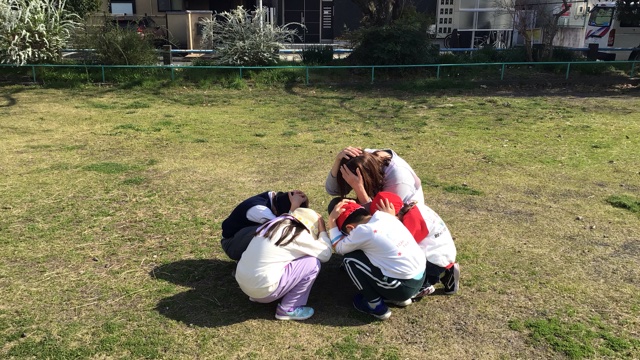 毎月、色々な場面を想定して、地震、火災などの緊急時の訓練を行っています。今回は公園で予告なしの地震訓練でした。スタッフの声を聞き、スタッフの居場所を確認し、いち早く集まる子どもたち。訓練の積み重ねが、いつもと違う場所でも戸惑うことなく形となって、表れていました。(ぱっそ音羽町教室)