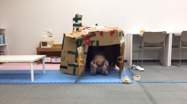前々回のブログでお伝えした段ボールハウスのその後です。製作してくれた中学生のお兄さんに「小学生たちがたくさん遊んでくれたこと」「遊んだことで壊れてしまったので修理をしてくれた子がいたこと」を伝えると嬉しそうでした。修理してくれた子も、遊んでみた事で自分の理想に近づけることができて楽しかったようです。1つのモノを通していろんな関わりが生まれていました。