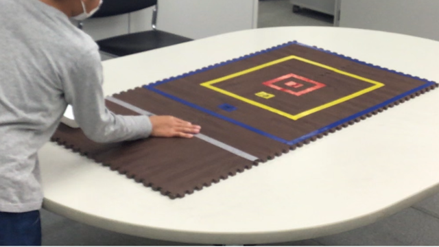 おはじきを弾いて得点のマスを狙います。弾く力が強すぎても弱すぎても高得点には入らないと分かると、自分の指先に集中し真剣な眼差しで狙いを定めていました。遊びの中で力の入れ方を意識し、さらにコントロールしてみる機会になりました。